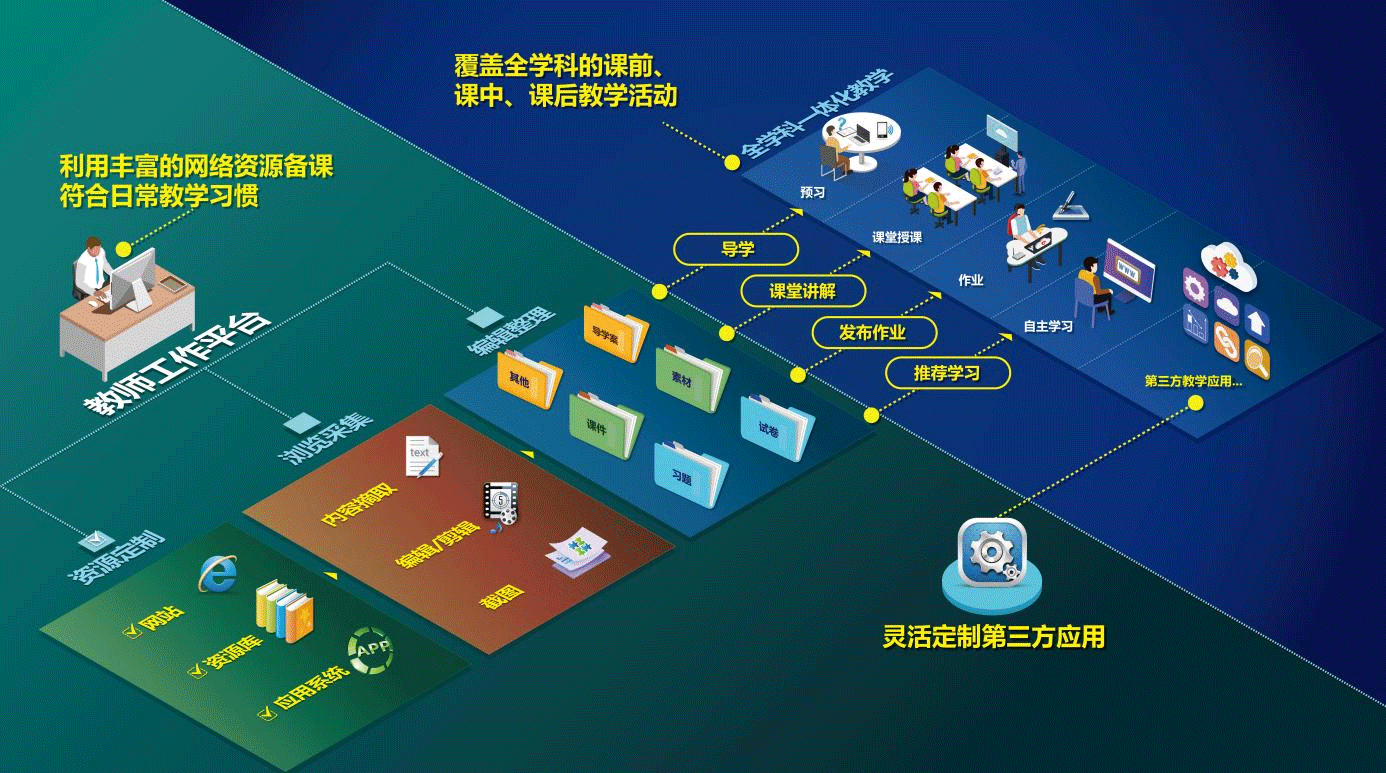 链式呈现教学全流程,一站式管理教学任务。系统通过教学流程导航提升管理效率,涵盖导学、教学、作业等核心阶段,支持追踪进度、多媒体授课、学习推荐与学情统计。学生可分享学习笔记,教师能便捷评阅测试、查看错题,结合移动应用,实现教学全流程一站式管理,提升便捷性与高效性。