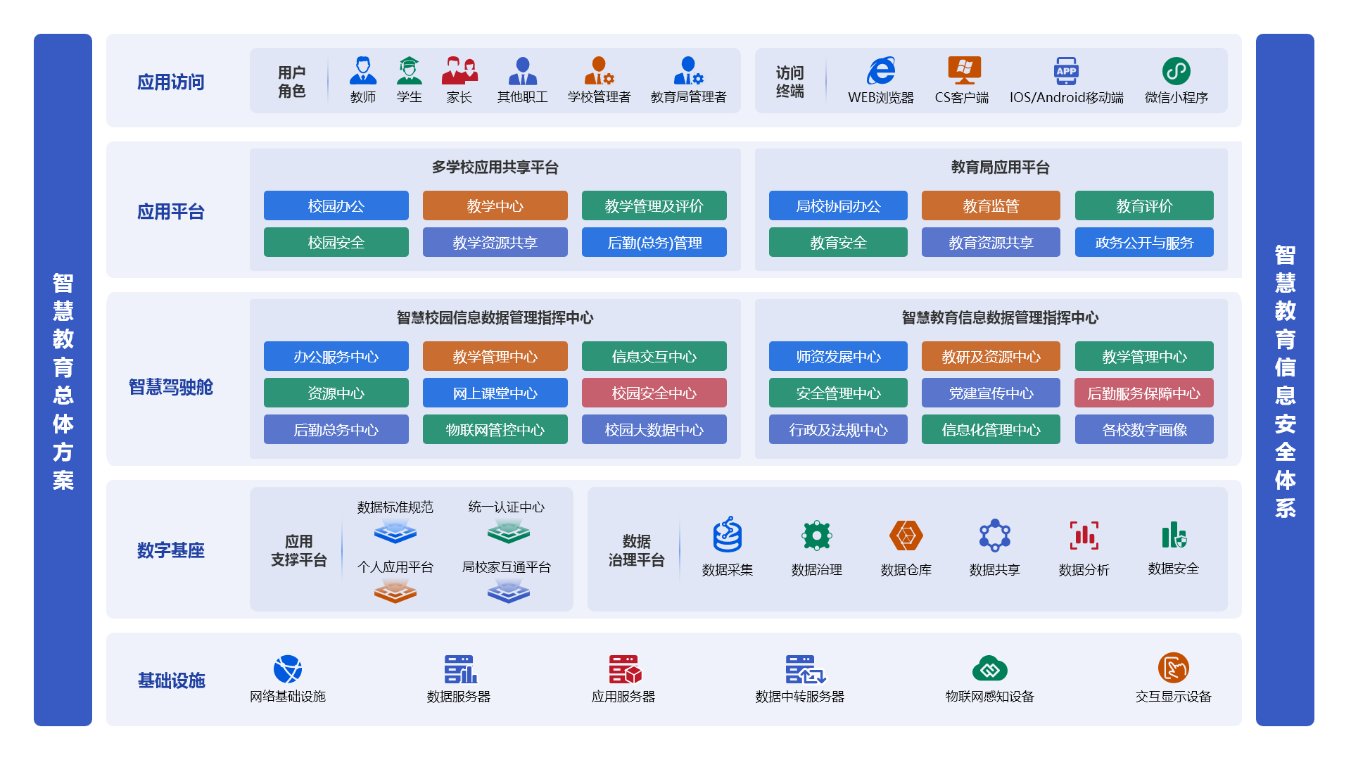 该系统为一体化智慧校园提供基础运行环境,该系统可适用以下场景: 用户身份认证与权限管理:适用于学校进行用户信息管理、精细化权限管理、人员变动管理和校园平台安全管理等场景。 组织结构与用户档案管理:适用于学校建立和维护组织结构、集中管理用户档案等场景。 人脸库管理:适用于学校开展人脸信息数据和人脸照片文件管理、节点服务检测、人脸识别支持等场景。 教务基础信息管理:适用于学校管理年级班级和教学班的师生信息、规划管理学科课程、课程表安排等场景。 平台设置与在线用户管理:适用于学校进行个性化系统配置、实时监控在线用户、管理用户登录行为等场景。 平台访问统计与分析:适用于学校监控平台用户行为、监测登录安全、辅助评估教学效果和决策制定等场景。